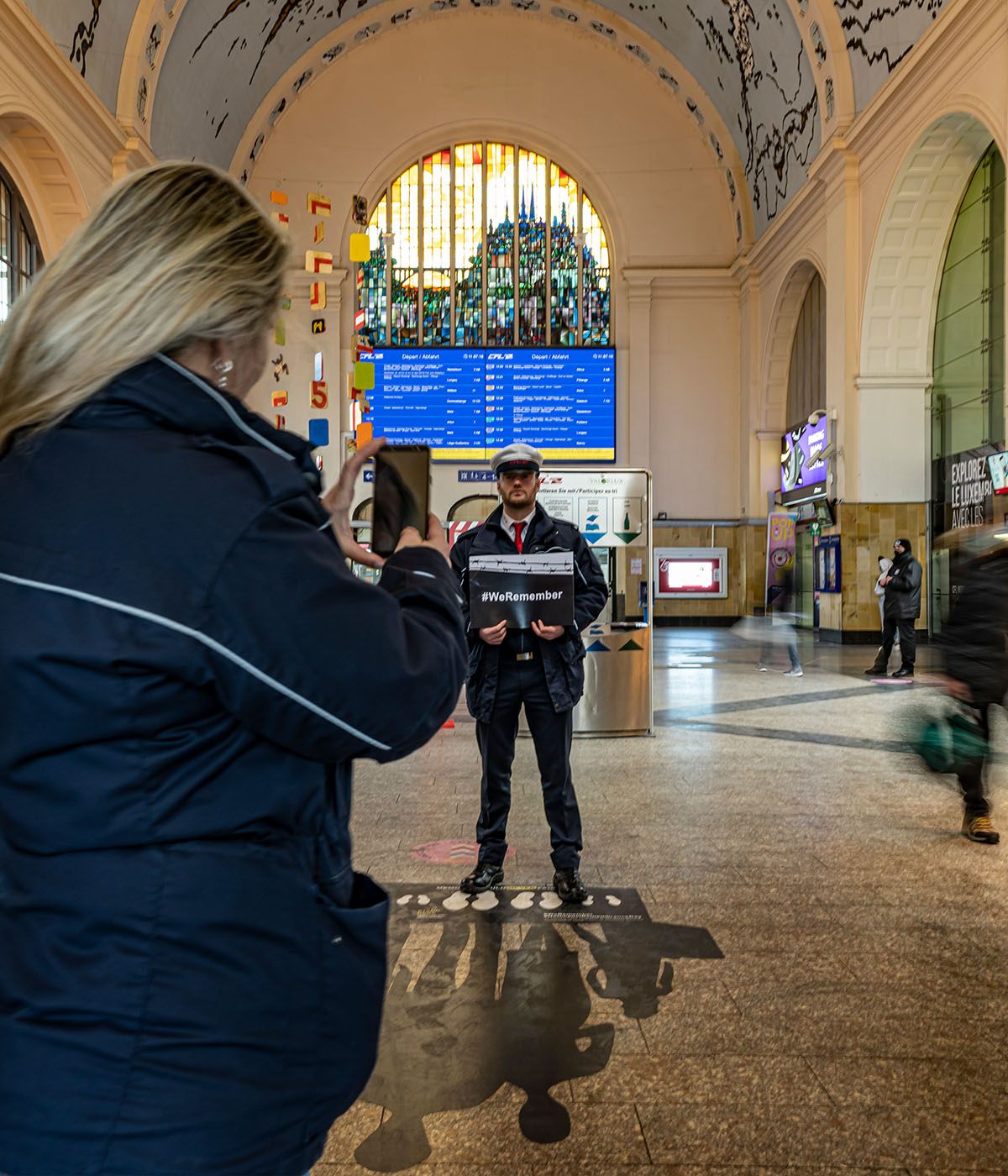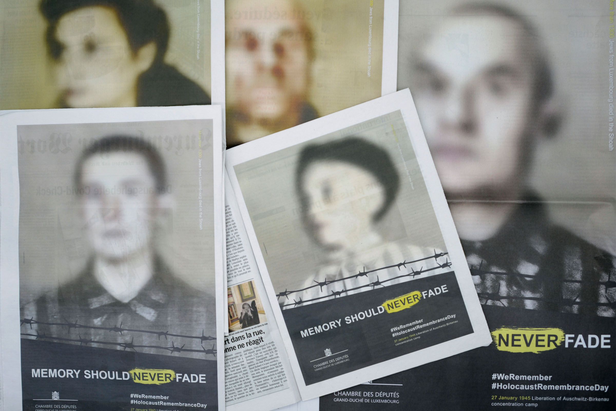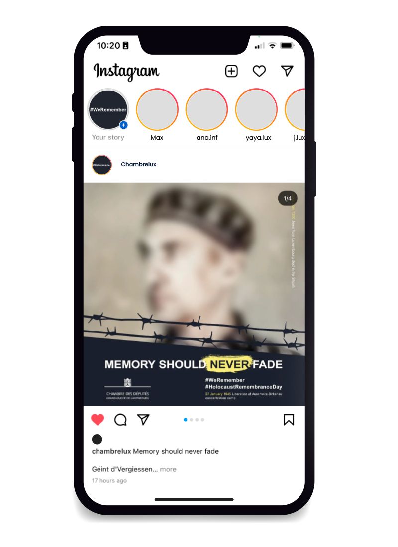 During the Covid-19 pandemic, the Chamber of Deputies felt it was particularly important to participate in the #WeRemember campaign in order to communicate a clear message to the public through a broad-based awareness campaign. Under the slogan ‘Memory should never fade’, posters and floor stickers were placed in Luxembourg railway stations to confront the population with the issue in the very places from which Jews were transported to concentration camps at the time.