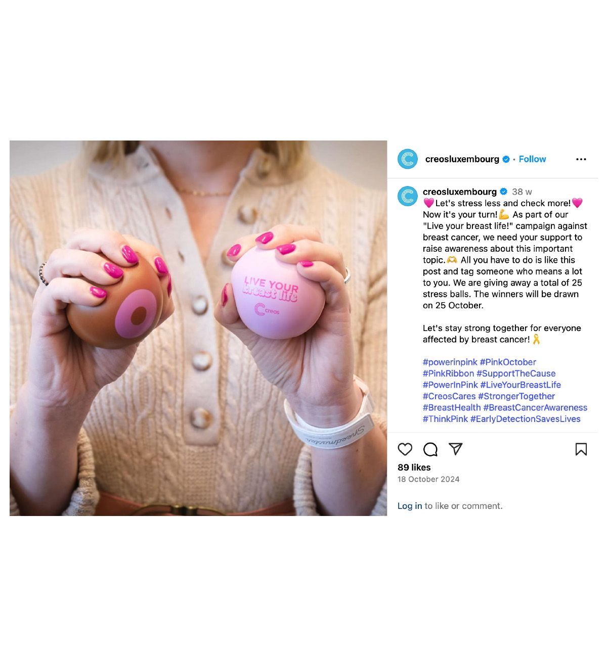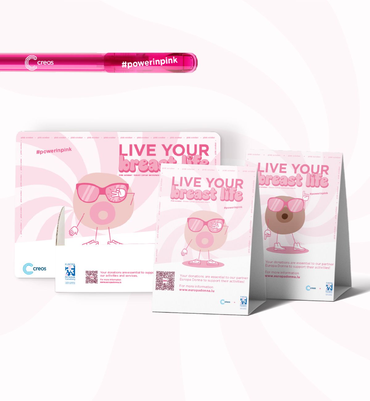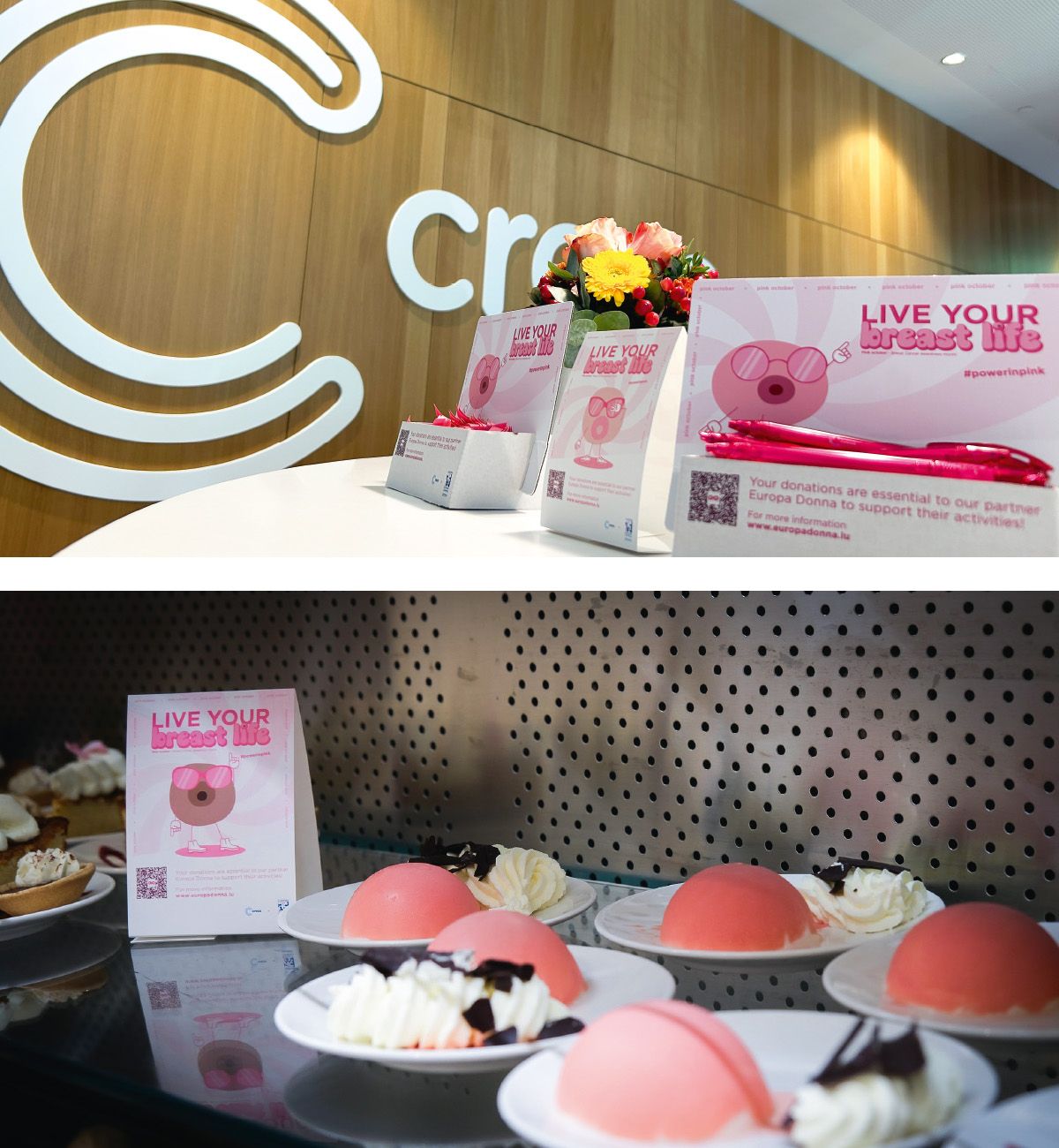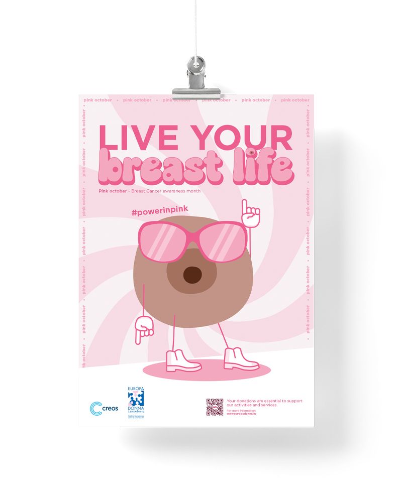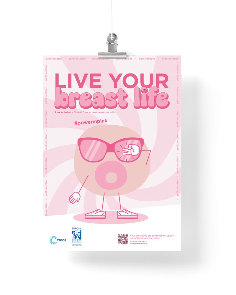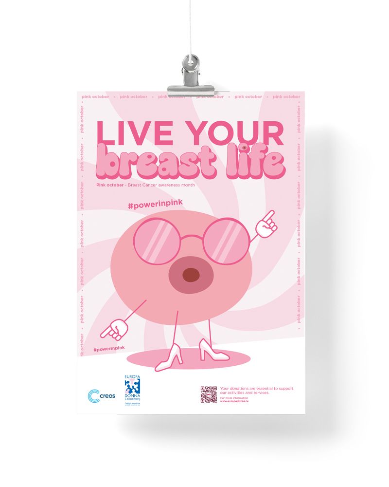 During Pink October, the breast cancer awareness campaign Live Your Breast Life for Creos, in partnership with Europa Donna Luxembourg, draws attention to this issue. It provides information and raises awareness internally about prevention and support. The message is conveyed in a positive, open, and transparent manner.