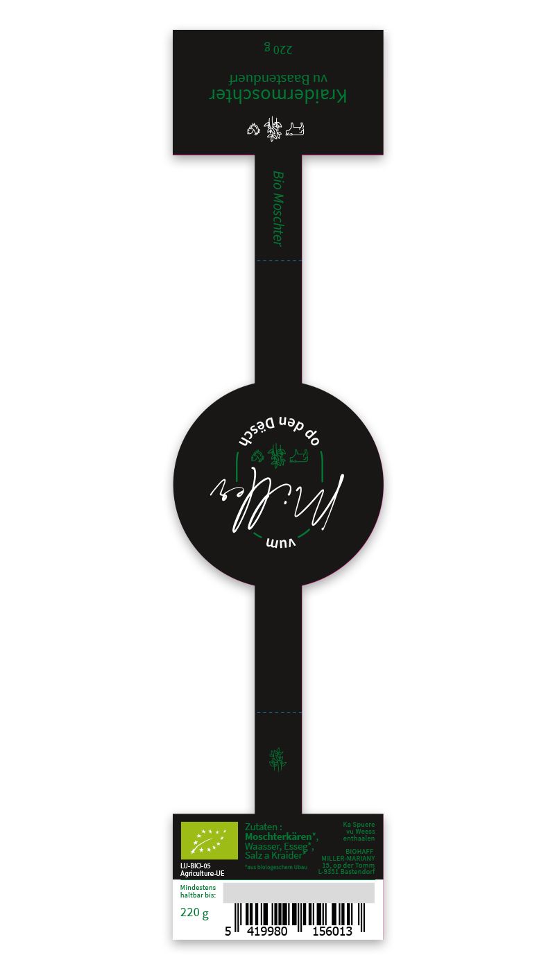 Starting with a logo for the Miller-Mariany organic farm, develop a consistent and expandable look for the packaging of their wide range of organic food products and accompany and support the customer in the development of their various projects and ideas.